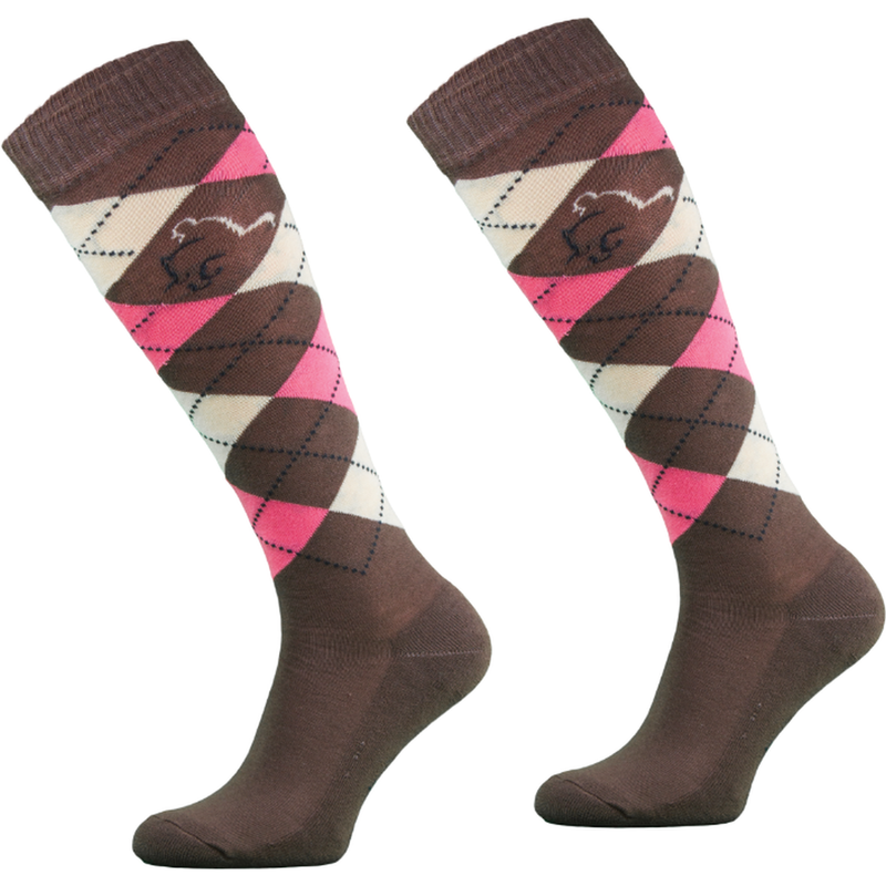 Skarpety jeździeckie marki Comodo wykonane z bawełny, niezwykle przyjemne dla stopy. Posiadają wzmocnienia w okolicach palców i pięt z mocniejszego, grubszego materiału. Ciekawy motyw kolorowych rombów. Skład: 80% Bawełna, 15% Poliamid, 5% Elastan.