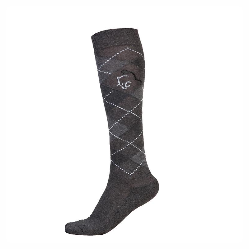 Skarpety jeździeckie marki Comodo wykonane z bawełny, niezwykle przyjemne dla stopy. Posiadają wzmocnienia w okolicach palców i pięt z mocniejszego, grubszego materiału. Ciekawy motyw kolorowych rombów. Skład: 80% Bawełna, 15% Poliamid, 5% Elastan.