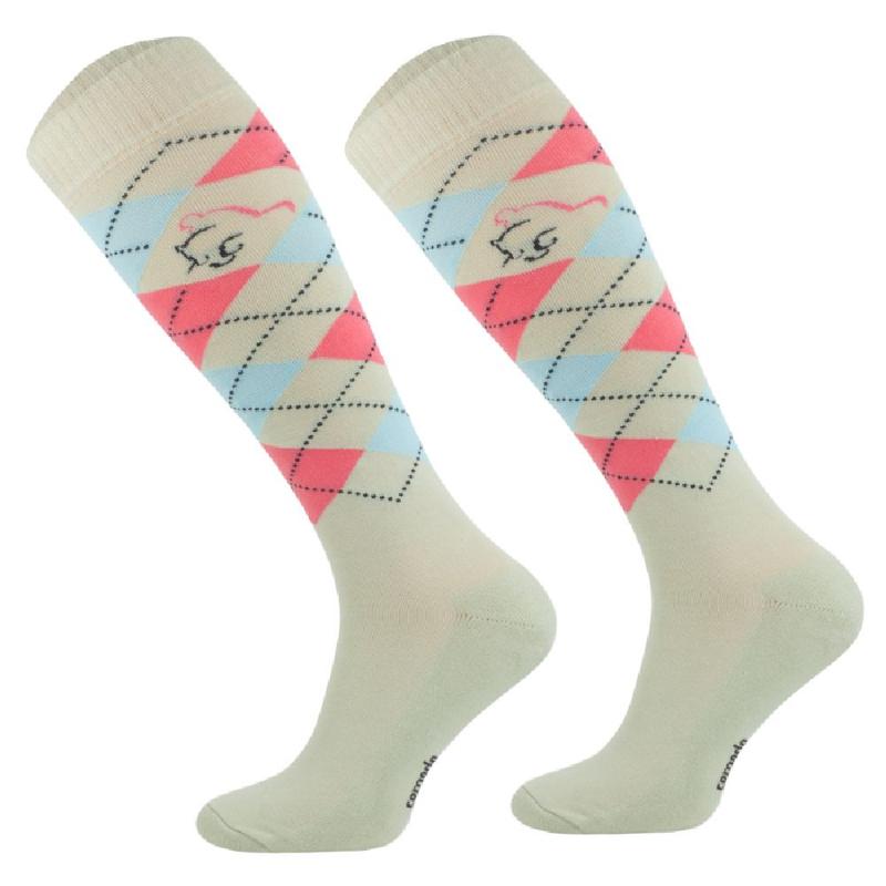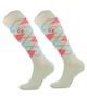 Skarpety jeździeckie marki Comodo wykonane z bawełny, niezwykle przyjemne dla stopy. Posiadają wzmocnienia w okolicach palców i pięt z mocniejszego, grubszego materiału. Ciekawy motyw kolorowych rombów. Skład: 80% Bawełna, 15% Poliamid, 5% Elastan.
