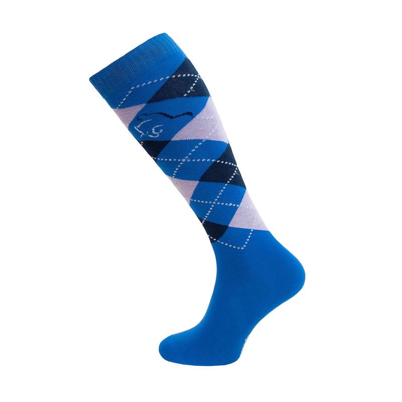 Skarpety jeździeckie letnie marki Comodo wykonane z bawełny, niezwykle przyjemne dla stopy. Posiadają wzmocnienia w okolicach palców i pięt z mocniejszego, grubszego materiału. Ciekawy motyw kolorowych rombów. Skład: 80% Bawełna, 15% Poliamid, 5% Elastan.