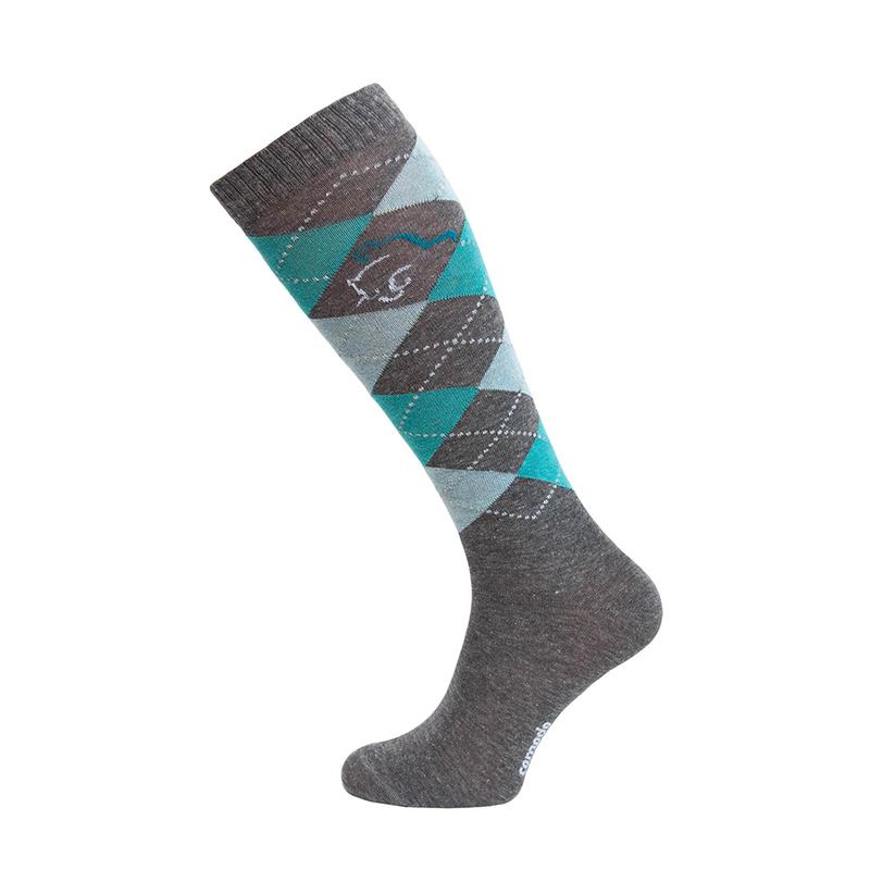 Skarpety jeździeckie letnie marki Comodo wykonane z bawełny, niezwykle przyjemne dla stopy. Posiadają wzmocnienia w okolicach palców i pięt z mocniejszego, grubszego materiału. Ciekawy motyw kolorowych rombów. Skład: 80% Bawełna, 15% Poliamid, 5% Elastan.