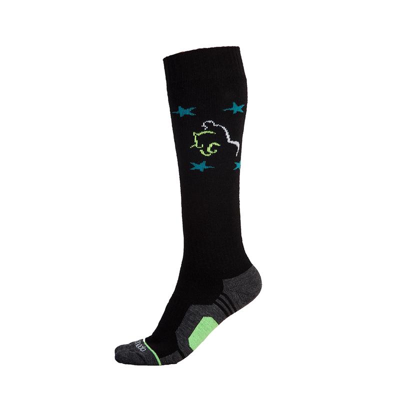 Skarpety bambusowe zimowe Horze z wzmocnionymi splotami w palcach, podeszwie i pięcie dla większej trwałości i komfortu podczas jazdy.Wykonane z materiału bamboo dla miękkości i lepszego odprowadzania wilgoci. Ozdobione logo Horze.Materiał: 80% wiskoza bambusowa, 18% poliamid, 2% elastan.