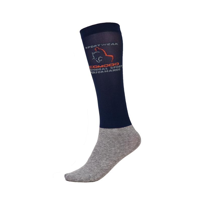Skarpety jeździeckie marki Comodo wykonane z bawełny, niezwykle przyjemne dla stopy. Posiadają wzmocnienia w okolicach palców i pięt z mocniejszego, grubszego materiału. Ciekawy motyw kolorowych rombów. Skład: 80% Bawełna, 15% Poliamid, 5% Elastan.