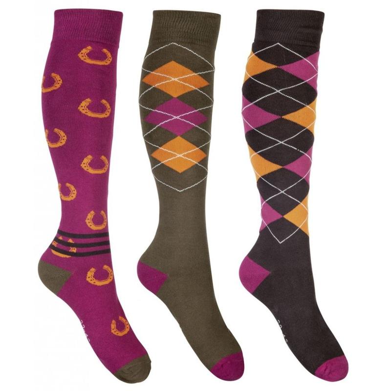 Skarpety jeździeckie marki Comodo wykonane z bawełny, niezwykle przyjemne dla stopy. Posiadają wzmocnienia w okolicach palców i pięt z mocniejszego, grubszego materiału. Ciekawy motyw kolorowych rombów. Skład: 80% Bawełna, 15% Poliamid, 5% Elastan.