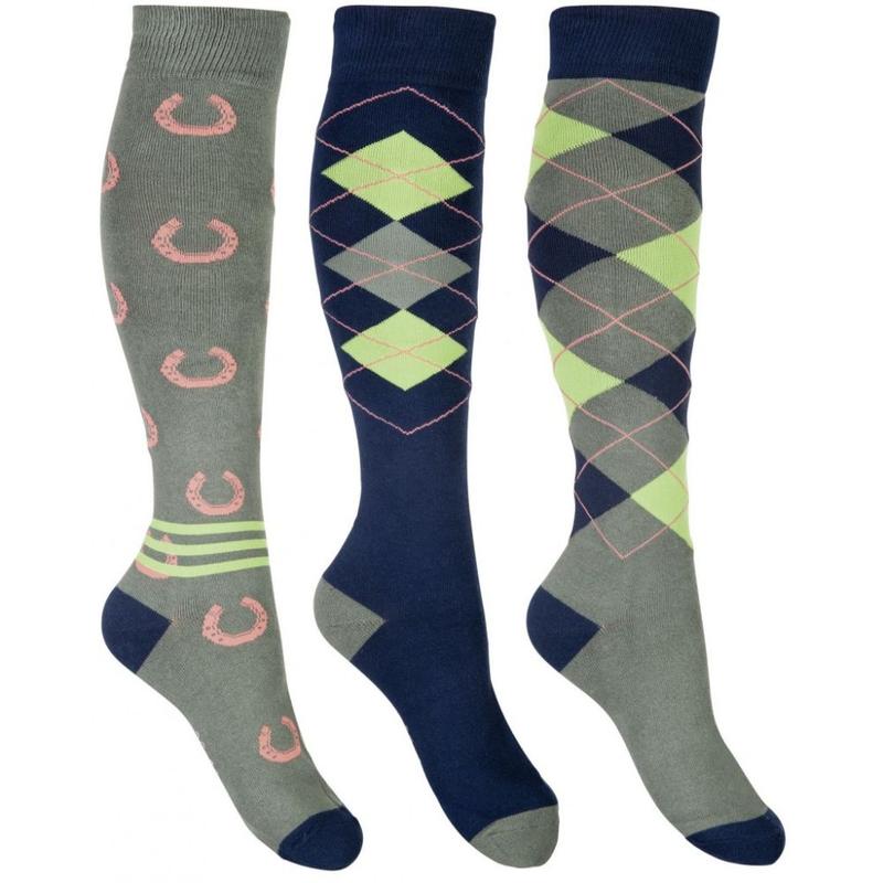 Skarpety HKM Cardiff trójpak oliwkowy-różowy-granatowy-seledynowy