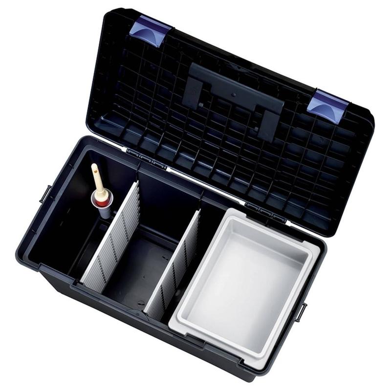 Duża i pojemna skrzynia jeździecka - posiada 2 wyjmowane przegródki. Wyposażona w wyjmowaną półeczkę i zatyczkę na pędzelek.