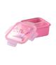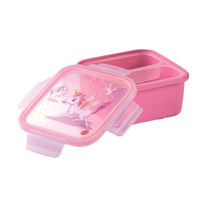 Wykonane z tworzywa sztucznego. Z wyjmowaną, podzieloną komorą wewnętrzną. Cztery zatrzaski utrzymują wszystko dobrze zamknięte. Można myć w zmywarce.ok. 15 cm x 15 cm x 7 cm