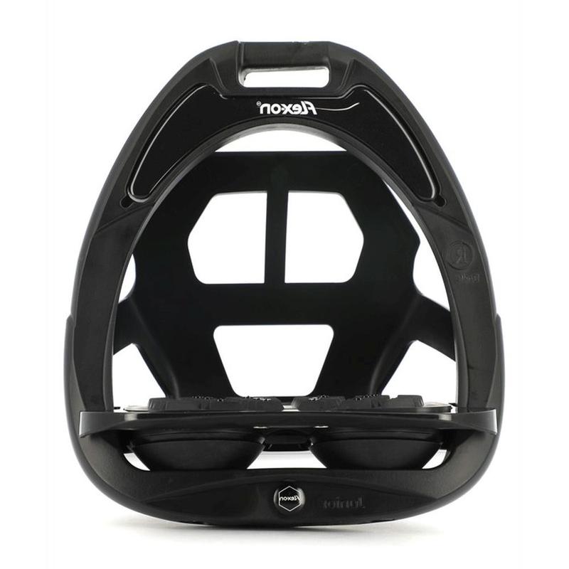 Strzemiona Flex-On Green Composite Junior z koszyczkami zabezpieczającymi stopę młodego jeźdźca przed niechcianym i niebezpiecznym zakleszczeniem stopy w strzemienium.