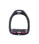 Każdy produkt wyposażony jest w elastomerowe rolki, które wykonane są z materiału absorbującego wstrząsy i umieszczone pod wkładką strzemienia. Ergonomiczny kształt stopki strzemienia i uchwytu puśliska stabilizuje ułożenie stopy w strzemieniu.
