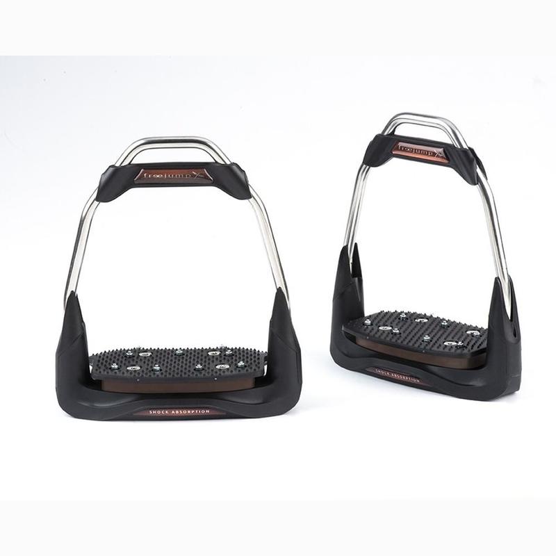 Szeroka stopka daje stabilne oparcie, a kolce na wkładce chronią przed przesuwaniem się buta w strzemieniu.