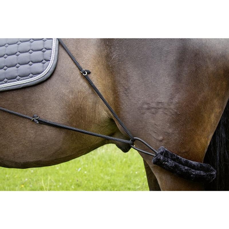 Pomoc do lonżowania firmy Waldhausen. Pomaga w pracy nad rozluźnieniem. Układa się swobodnie na kłębie, za pomocą specjalnego kółka przechodzi pomiędzy nogami konia, a następnie za pomocą karabińczyków przypinane jest do wędzidła. Długość regulowana.