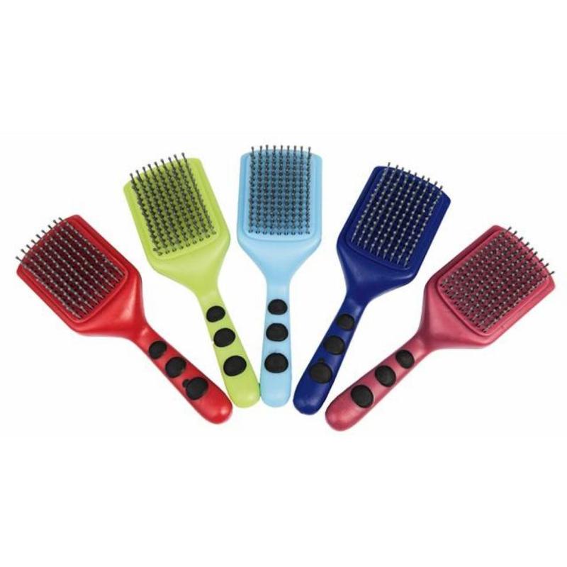 Szczotka do grzywy i ogona Style firmy HKM. Wyposażona w wygodną rączkę oraz platikowe igiełki do czesania. Wymiar ok 25x10,5 cm.