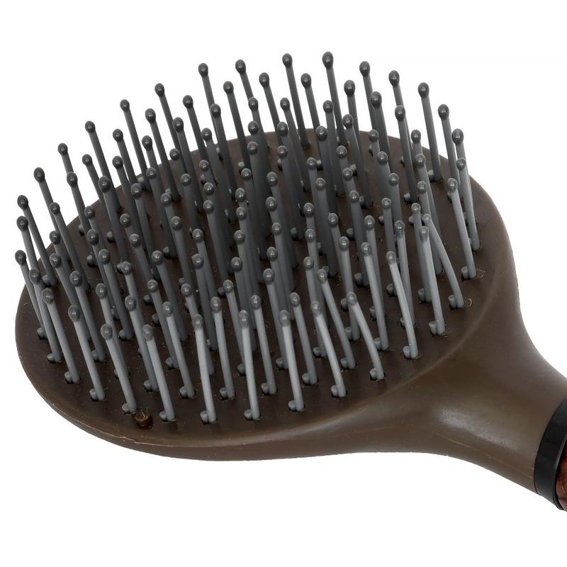 Plastikowa szczotka do grzywy i ogona. Wykonana z wytrzymałego plastiku i wyposażona w elastyczne, zaokrąglone końcówki na sztywnym włosiu szczotka doskonale nadaje się do delikatnego, ale skutecznego rozczesywania, minimalizując ryzyko uszkodzenia włosów