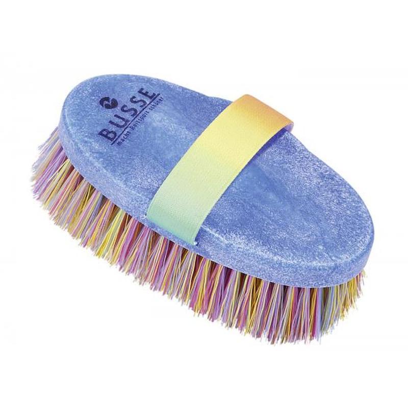 Szczotka ryżowa firmy Busse. Grzbiet szczotki wykonany z tworzywa sztucznego, uchwyt z elastycznej taśmy. Długość włosia 3 cm.
