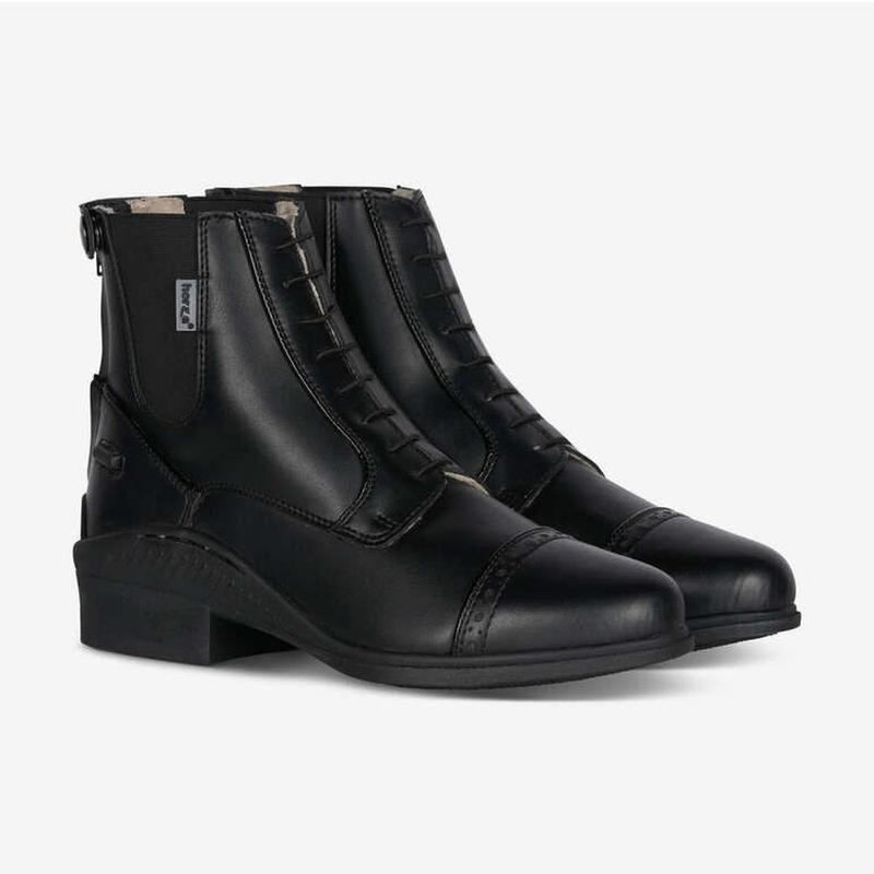 Sztyblety Wexford firmy Horze. Wygodne, wykonane z miękkiego materiału przypominającego skórę, która jest łatwa w pielęgnacji. Zapinane z przodu na zamek błyskawiczny przez co stają się wygodne w użytkowaniu. Podeszwa wykonana z wytrzymałej antypoślizgowej gumy.
