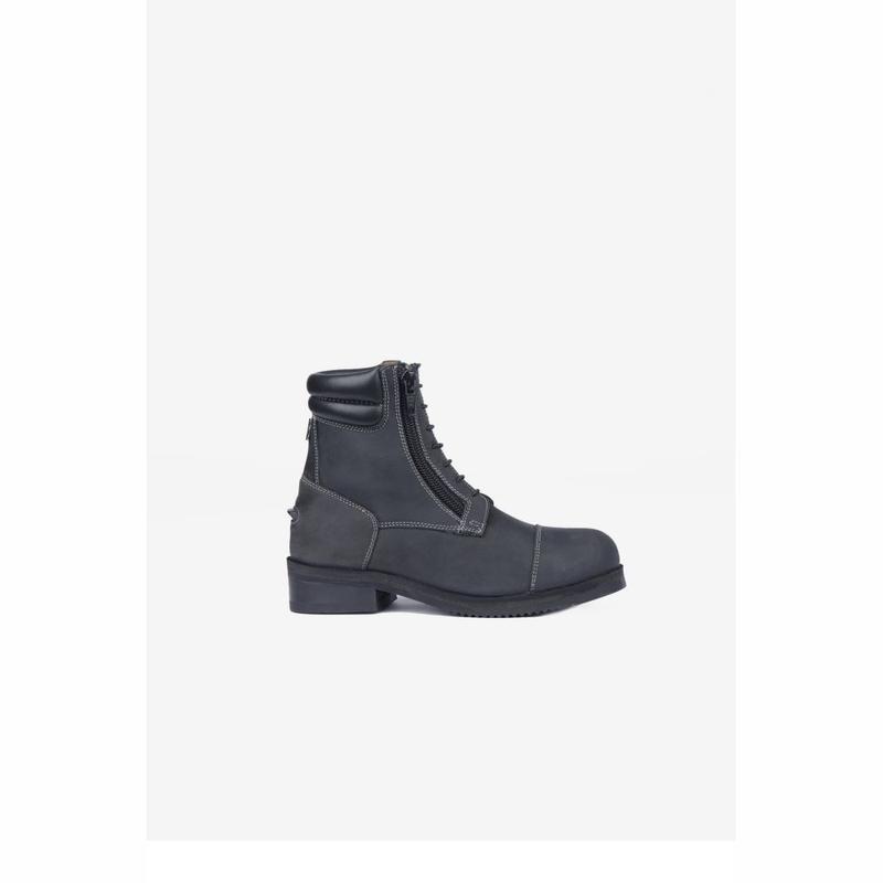 Sztyblety Kilkenny firmy Horze. Wygodne oraz eleganckie buty, wykonane z miękkiego materiału przypominającego skórę, która jest łatwa w utrzymaniu. Sznurowane, dodatkowo zapinane na zamek z tyłu, przez co stają się wygodniejsze w użytkowaniu. Podeszwa wykonana z wytrzymałej antypoślizgowej gumy.