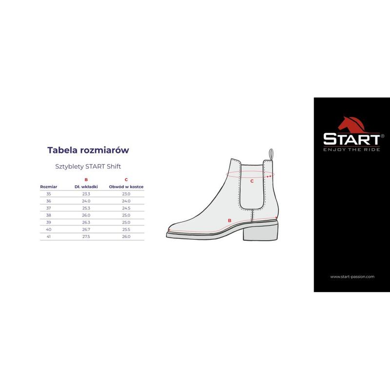 Sztyblety firmy Start. Stylowe i wygodne sztyblety wykonane z miękkiej, wysokiej jakości skóry naturalnej. Ukośny zamek błyskawiczny z boku nadaje im charakterystyczny wygląd, a jednocześnie ułatwia zakładanie i zdejmowanie. Elastyczne wstawki wokół kostek zapewniają elastyczność i idealne dopasowanie, gwarantując pełen komfort podczas jazdy. Wytrzymała,...