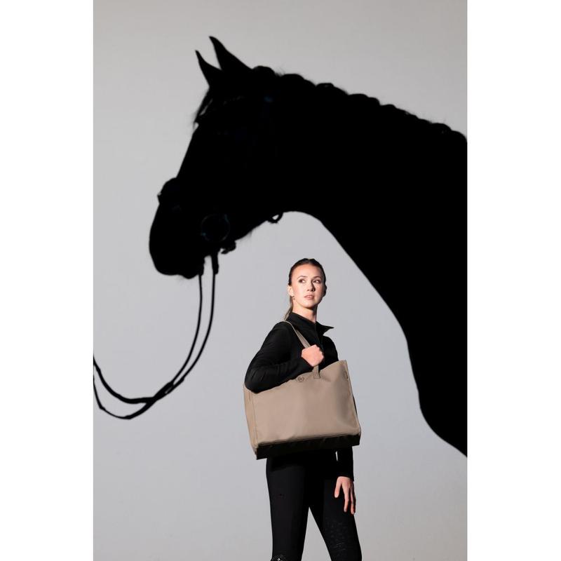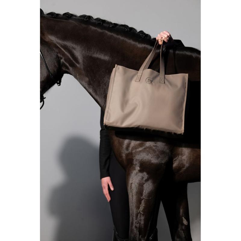 Torba ze sztucznej skóry do stajni i na zakupy z kolekcji Platinum 2025. Wyposażona w kieszeń na suwak i przegródkami wewnątrz, paskek na ramię ze sztucznej skóry i zamykanie na automatyczne 3 ukryte magnesy. Ozobiona emblematem platynowym.