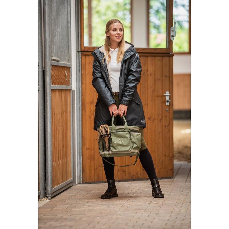 Torba na akcesoria firmy Horze. Wyposażona w dużą przegrodę z zapięciem na troczki, 3 zewnętrzne kieszenie, długi pasek na ramię, dwie rączki i zapinana na zamek kieszeń z wyhaftowanym logo producenta. Materiał łatwy w czyszczeniu