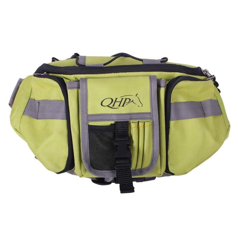 Torba biodrowa z różnymi przegródkami firmy QHP, w której potrzebne są wszystkie przybory do stylizacji konia. Torebkę można zawiesić wokół talii podczas oplatania lub stylizacji za pomocą paska.
