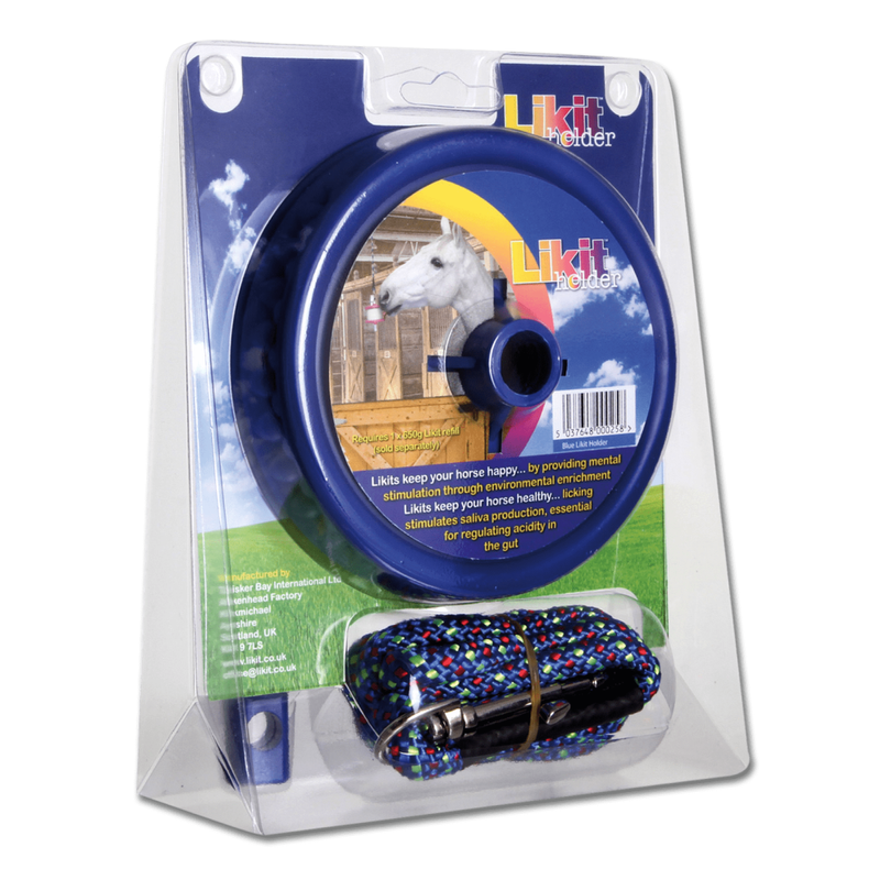 Uchwyt do lizawki Likit firmy Waldhausen. Praktyczny, do przywiązania do ściany boksu lub sufitu. W zestawie długa linka. Zapobiega nudzie, zapewniając dużo zabawy. Uchwyt przeznaczony do lizawki o wadze 650g.