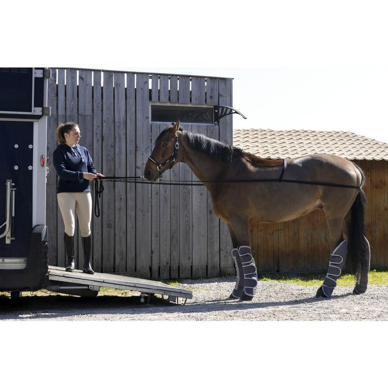 Uprząż do załadunku konia firmy Waldhausen wykonana z taśmy nylonowej. Świetnie sprawdzi się jako pomoc podczas wchodzenia do przyczepy opornych koni.
