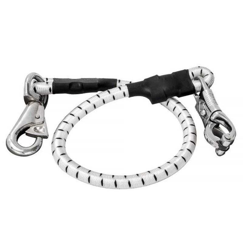 Elastyczny uwiąz transportowy z dwoma karabińczykami, w tym jednym typu panic. Długość 60 cm