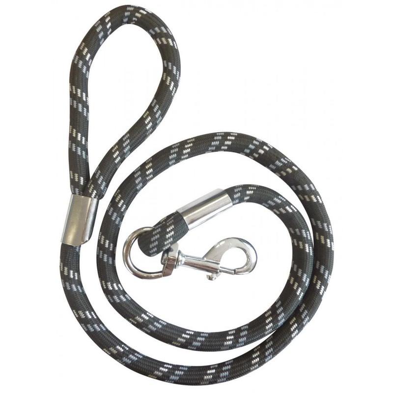 Bardzo mocna i elastyczna lina polipropylenowa o średnicy 17mm z metalowym zapięciem i solidnym karabińczykiem o długości 12 cm.