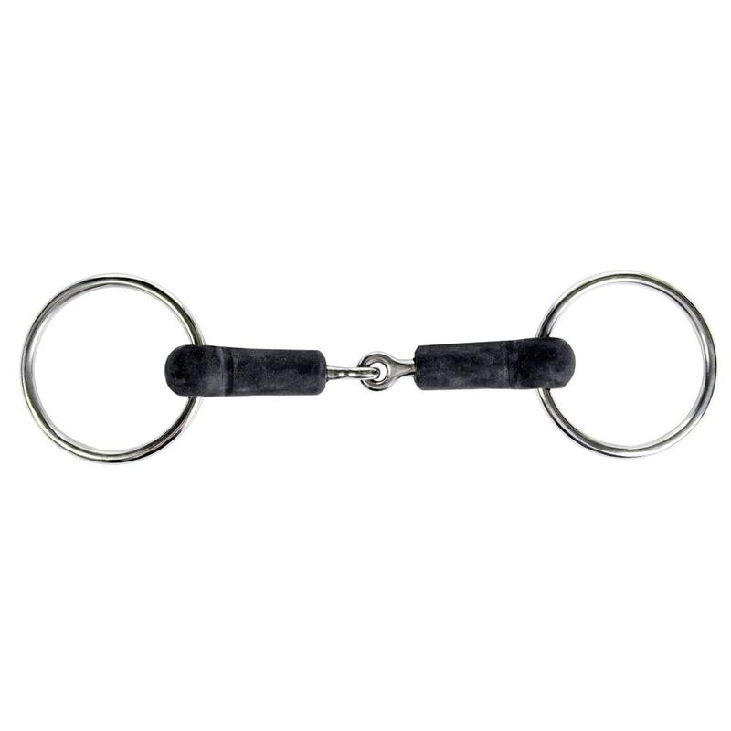 Wędzidło gumowe pojedynczo łamane firmy HKM. Wykonany ze stali nierdzewnej z ścięgierzem pokrytym gumą. Nadaje się dla koni wrażliwych. 11,5 cm Grubość: 18 mm Średnica kółek: 60 mm 12,5|13,5|14,5|15,5 cm Grubość: 18 mm Średnica kółek: 70 mm.