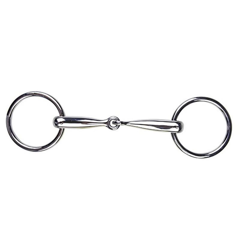 Wędzidło zwykłe, pojedynczo łamane, pełne firmy HKM. Wykonane ze stali szlachetnej. 9,5|10,5 cm Grubość: 12 mm Średnica kółek: 45 mm.