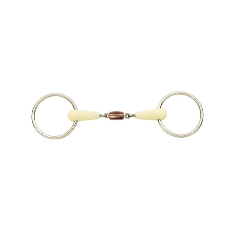 Wędzidło Anatomic podwójnie łamane z łacznikiem miedzianym puste z firmy Ekkia Feeling.Grubość ścięgierz: 21 mm,Średnica pierścieni: 65 mm