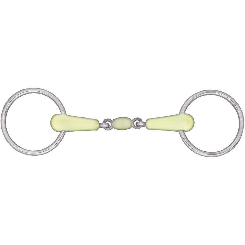 Wędzidło smakowe podwójnie łamane firmy Horze. Ściegierz wykonany z plastiku o jabłkowym smaku. Pozostałe elementy wykonane ze stali nierdzewnej.