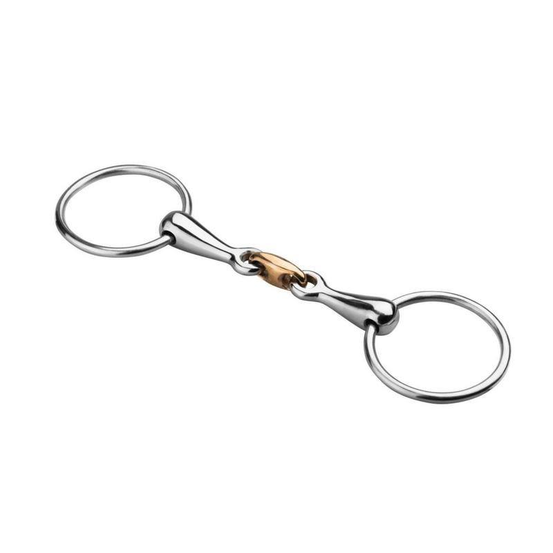 Wędzidło Anatomic podwójnie łamane z łacznikiem miedzianym puste z firmy Ekkia Feeling.Grubość ścięgierz: 21 mm,Średnica pierścieni: 65 mm