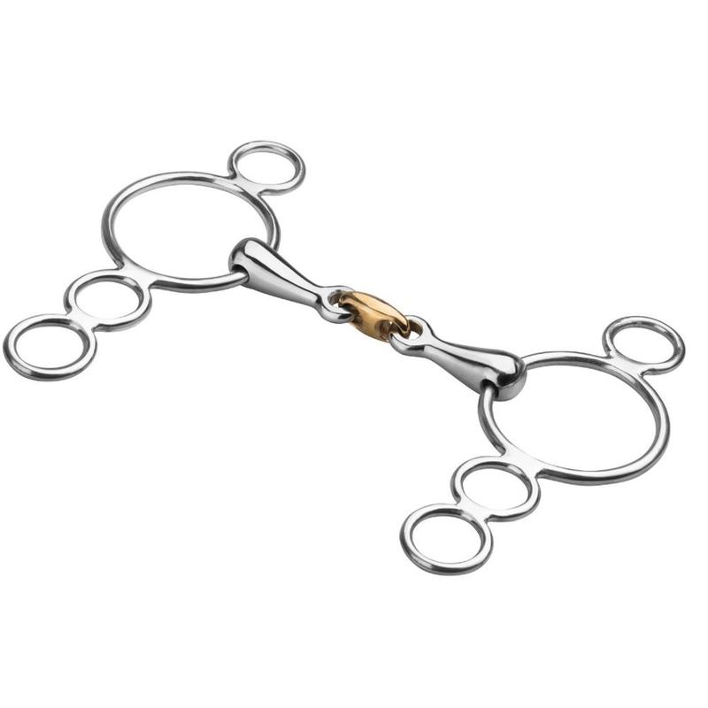 Wędzidło wielokrążek Start z trzema kółkami, podwójnie łamane pełne firmy Start. Łącznik wykonany z miedz, a pozostałe elementy ze stali szlachetnej.