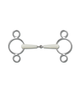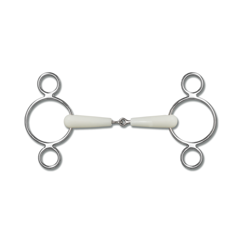 Wędzidło wielokrążek z trzema pierścieniami Happy Mouth pojedynczo łamane firmy Waldhausen. Pierścienie wykonane ze stali nierdzewnej, natomiast ścięgierz ze tworzywa sztucznego o smaku jabłka. Wędzidło skutecznie zachęca do żucia i ułatwia pracę z młodym