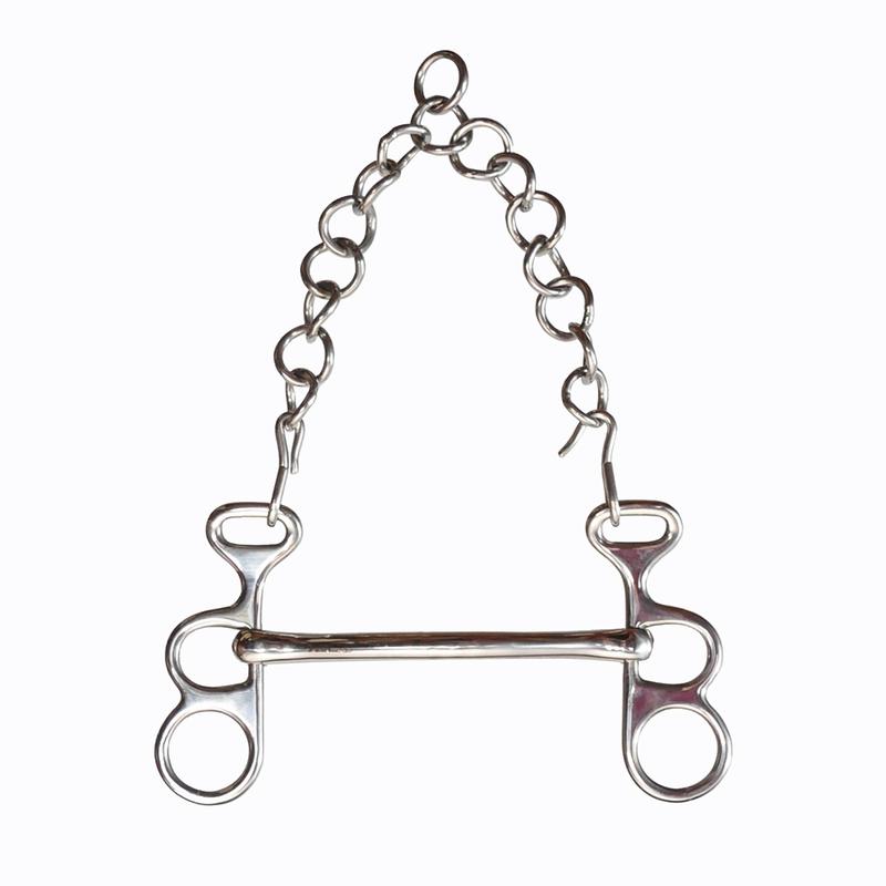 Wędzidło zaprzęgowe Butterfly proste, z łańcuszkiem firmy Metalab. Solidnie wykonane ze stali nierdzewnej.
