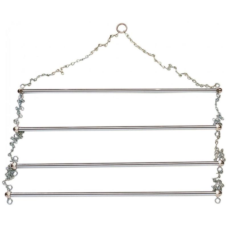 Wieszak drabinowy firmy Busse. Posiada cztery drążki oraz łańcuszek do wygodnego zawieszania. Idealnie nadaje się do przechowywania czapraków, zapewniając ich czystość, suchość oraz porządek. Szerokość drążków 60 cm.