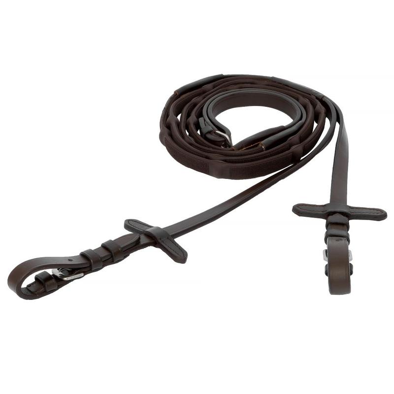 Te wodze wykonane są z wysokiej jakości skóry w połączeniu z materiałem Kris Magna – zaawansowaną, antypoślizgową mieszanką o wysokiej gęstości, która zapewnia pewny chwyt w każdych warunkach. Materiał charakteryzuje się doskonałą elastycznością, odpornością na ścieranie i długotrwałą wytrzymałością, zapewniając wygodę i stabilność wodzy podczas...