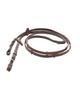 Wodze firmy QHP. Przeplatane gumą z gripem, co eliminuje wypadanie wodzy z rąk. Przypinany do wędzidła za pomocą skórzanego paska z klamrą.