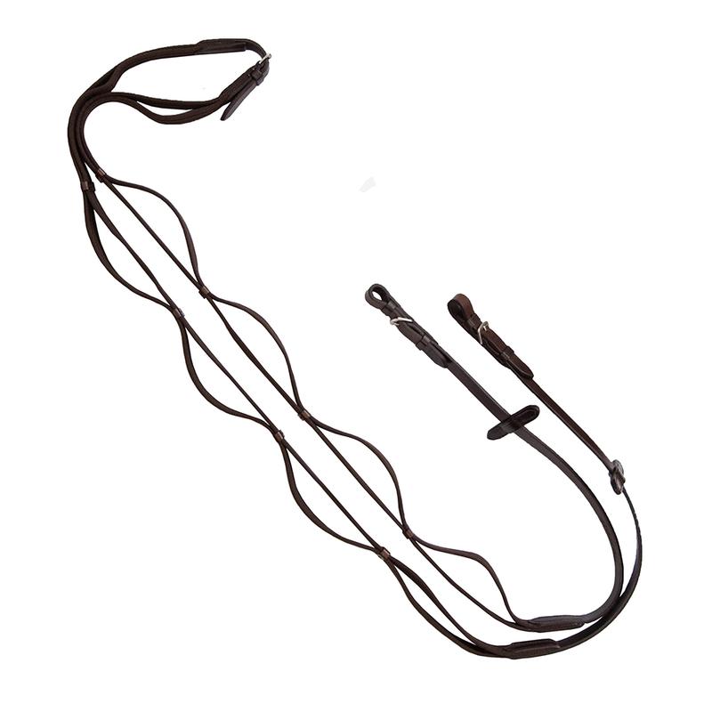 Wodze podwójne z taśmy parcianej firmy Parkur. Wyposażone w stopery dla lepszego trzymania. Zakończone przystułkami ze skóry naturalnej. Produkt Polski