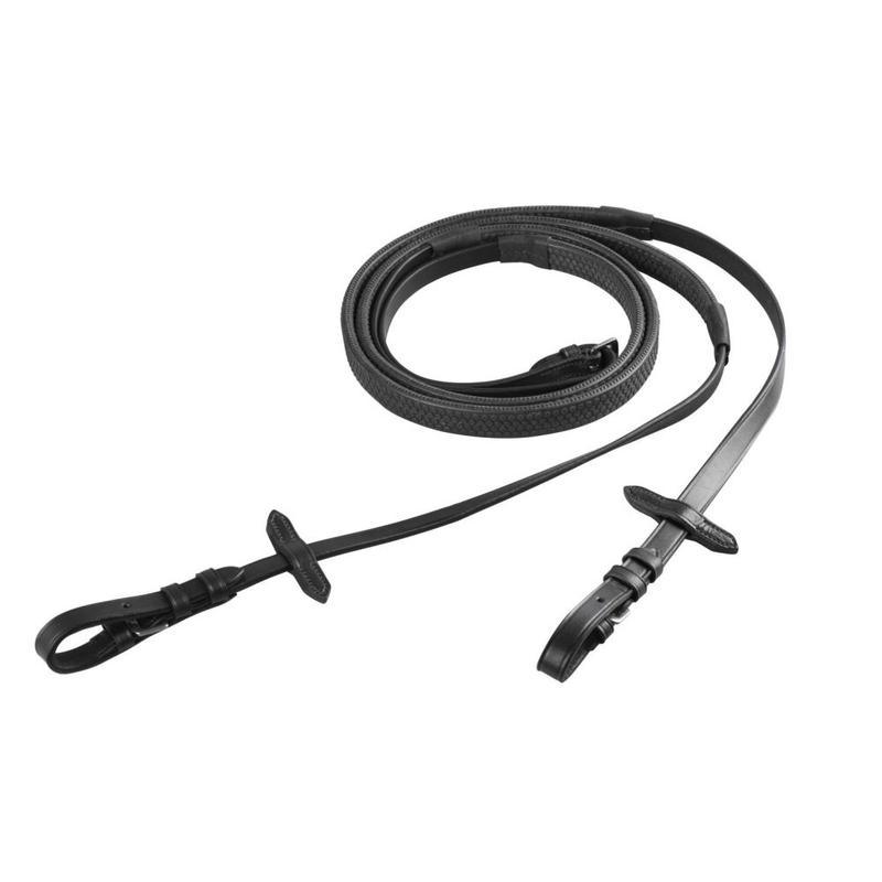 Wodze z naciągiem gumowym Start marki Horse-Trade. Wykonane z wytrzymałej gumy, która dzięki wypustkom jest także antypoślizgowa co pozwala na stabilny chwyt. Zapinane na klasyczne sprzączki wykonane ze stali nierdzewnej. Posiadają motylki do wytoku. Szerokość: 22 mm.