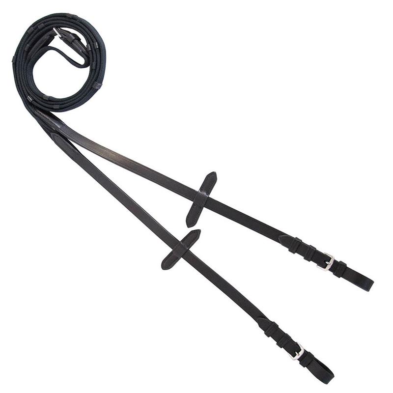 Wodze z taśmy parcianej firmy Parkur. Wyposażone w stopery dla lepszego trzymania. Zakończone przystułkami ze skóry naturalnej. Produkt Polski