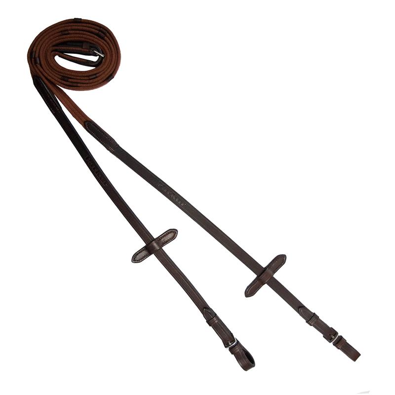 Wodze z taśmy parcianej firmy Parkur. Wyposażone w stopery dla lepszego trzymania. Zakończone przystułkami ze skóry naturalnej. Produkt Polski