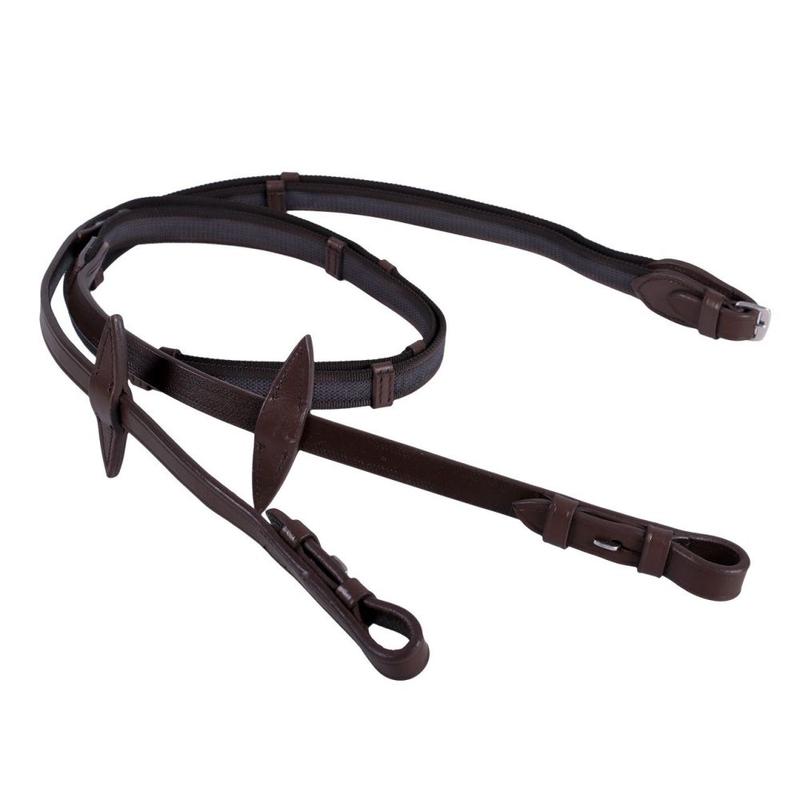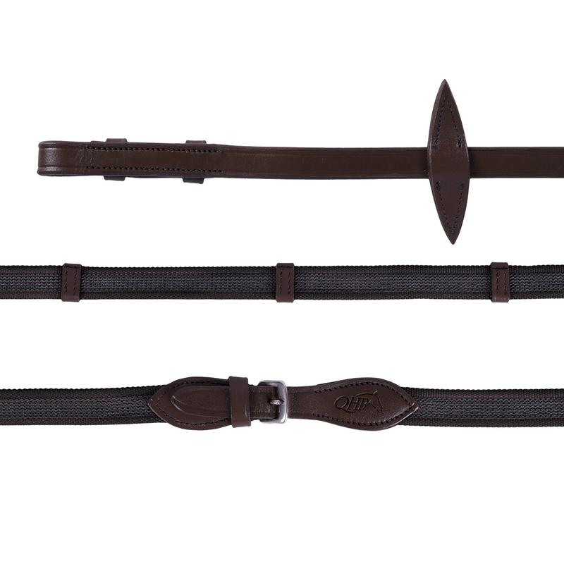 Wodze z gumowanej taśmy angielskiej ze stoperami QHP ciemnobrązowe