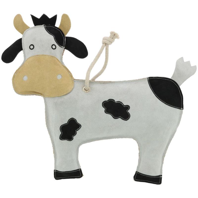Skórzana zabawka w kształcie krowy, która pobudza zainteresowanie konia. Pikowana włóknem kokosowym dla uzyskania przyjemnej faktury. Wyposażona w uchwyty do łatwego zawieszania.