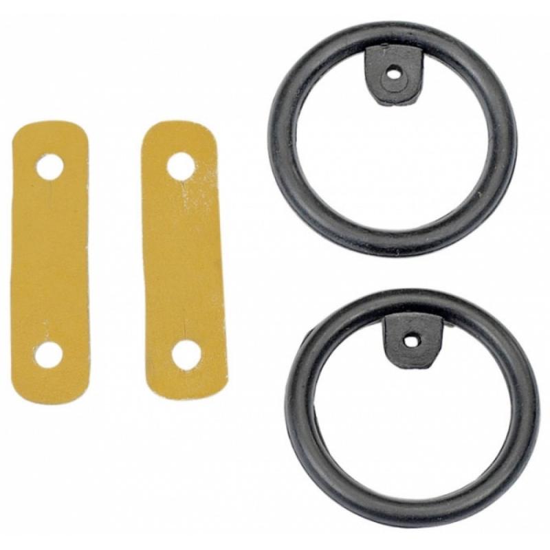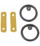 Zestaw akcesoriów do strzemion bezpiecznych firmy Busse składający się z dwóch gumowych kółek oraz dwóch skórzanych pasków.