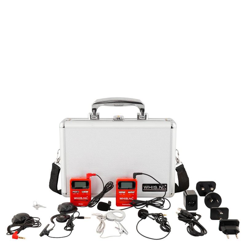Zestaw słuchawkowy firmy WHIS. To bezprzewodowy system służący do komunikacji pomiędzy jeźdźcem a trenerem. Dzięki niemu możesz słyszeć swojego trenera nawet do 300 metrów.